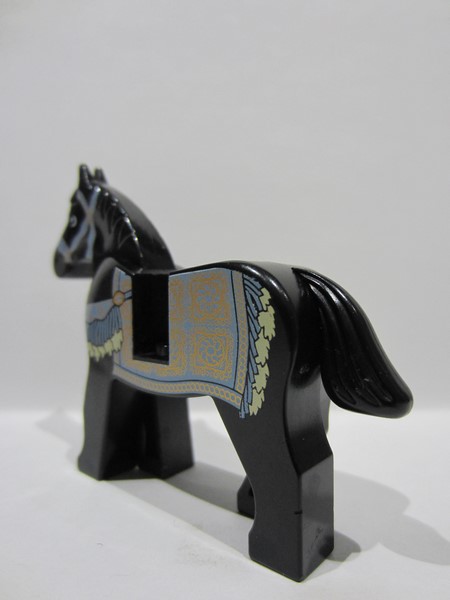 lego 2010 animal 4493c01pb06 Horse Black, Prince of Persia with Black and White Eyes, White Pupils and Sand Blue and Gold Bridle and Persian Blanket Pattern (Aksh)
