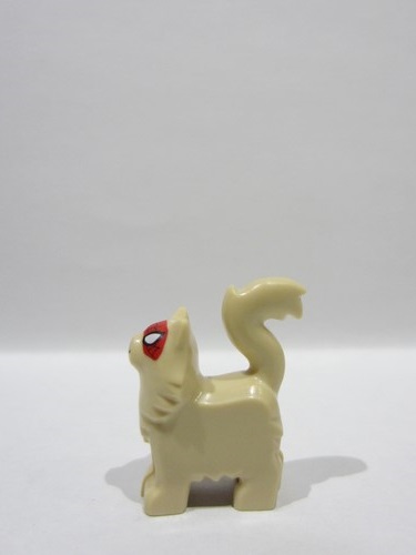 lego 2025 animal 6329pb02 Cat Tan, Maine Coon, Standing with Black and White Eyes and Red Spider Web Mask Pattern (Spider-Cat)