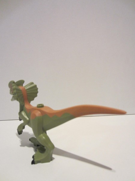 lego 2019 animal dilo03 Dilophosaurus Olive Green, Second Version with Flexible Rubber Tail, Dark Red and Medium Nougat Markings Pattern