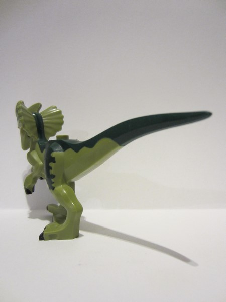 lego 2023 animal dilo04 Dilophosaurus Olive Green, Dinosaur Dilophosaurus Second Version with Flexible Rubber Tail, Bright Light Orange, Red and Dark Green Markings