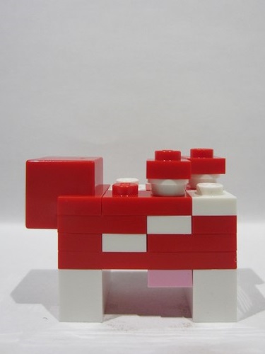 lego 2022 animal minecow02c Cow Red, Minecraft Cow, Mooshroom (Light Bluish Gray Pixel Between Eyes and Dark Bluish Gray Top Border on Forehead) - Brick Built