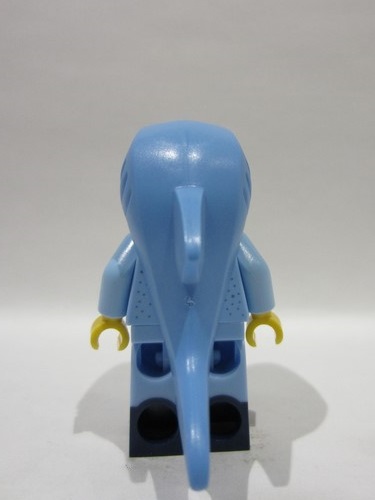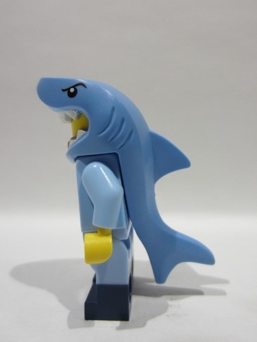 Medium Blue Minifigure, Headgear Head Cover, Costume Shark Head, Tail and Fin with Black Eyes and White Teeth Pattern