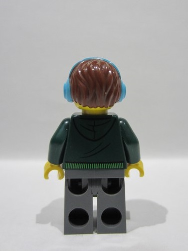 Reddish Brown Minifigure, Hair Short Tousled with Medium Azure Headphones / Earmuffs Pattern
