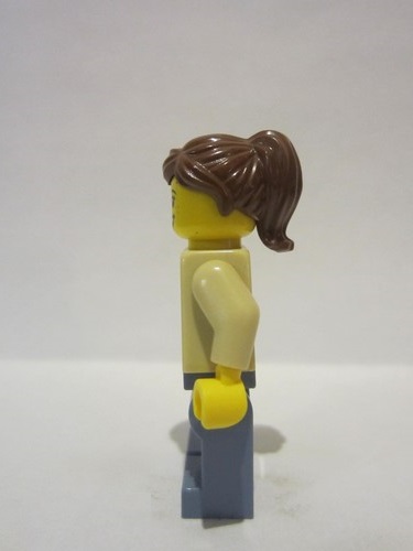 lego 2022 mini figurine bdp032 Citizen Female, Tan Shirt, Sand Blue Legs, Reddish Brown Ponytail Hair