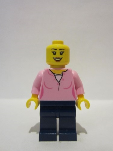 lego 2022 mini figurine bdp035 Citizen Female, Bright Pink Top, Dark Blue Legs, Dark Brown Hair