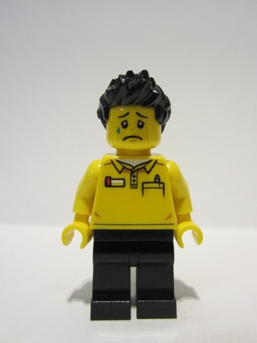 lego 2022 mini figurine bdp057 LEGO Store Employee Black Legs and Spiked Hair