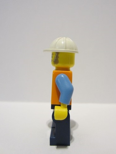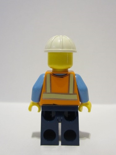 lego 2023 mini figurine bdp063 Construction Foreman Male, Orange Safety Vest with Reflective Stripes, Dark Blue Legs, White Construction Helmet