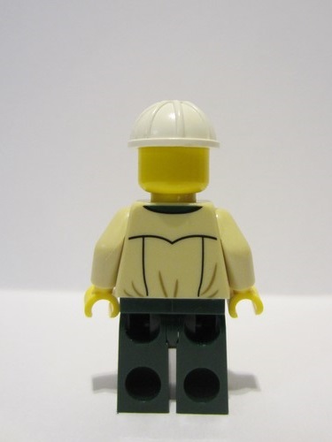Female, Tan Shirt, Dark Green Legs, White Construction Helmet