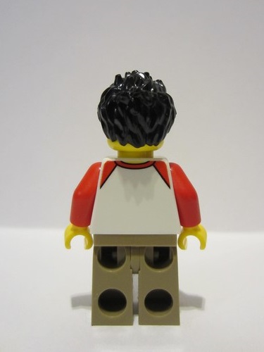 lego 2023 mini figurine bdp067 Son Classic Space Shirt with Red Sleeves, Dark Tan Legs, Black Spiked Hair