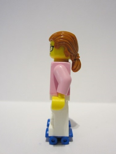 lego 2023 mini figurine bdp096 1950s Diner Waitress Bright Pink Top, White Legs, Dark Orange Hair, Blue Roller Skates