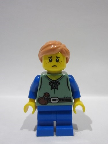 Sand Green Torso Laced Shirt, Yellow Neck, Black Belt, Silver Buckle, Reddish Brown Pouch Pattern / Blue Arms / Yellow Hands