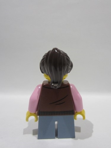 lego 2025 mini figurine bdp148 Child Girl, Reddish Brown Jacket, Sand Blue Short Legs, Dark Brown Ponytail