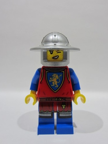 lego 2025 mini figurine bdp185 Medieval Seaside Market Lion Knight Archer Female, Flat Silver Broad Brim Helmet