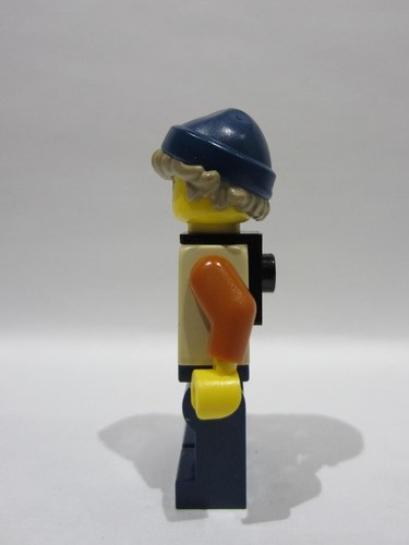 lego 2025 mini figurine bdp186 Medieval Seaside Market Fisher Female, Tan Vest, Dark Blue Legs, Neck Bracket, Dark Tan Hair, Dark Blue Beanie