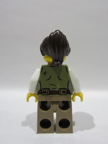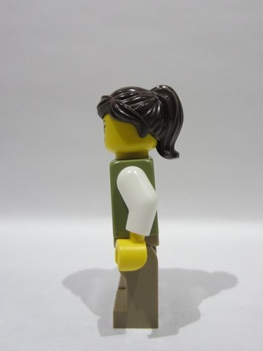 lego 2025 mini figurine bdp191 Riverside Scholars Female, Olive Green Vest, Dark Tan Legs, Dark Brown Ponytail