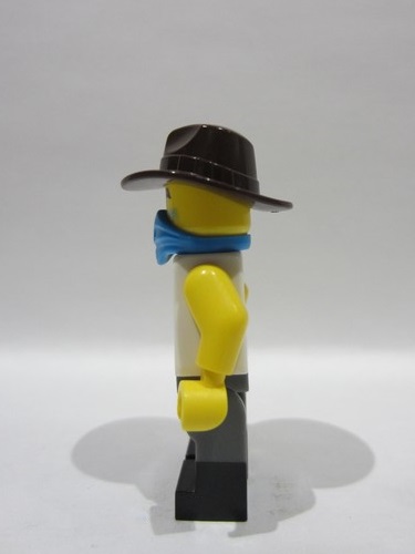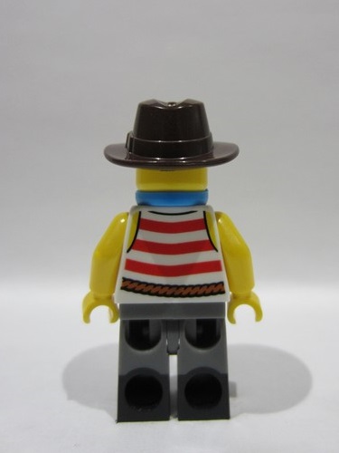 lego 2025 mini figurine bdp194 Wild West Train Bandit Male, White Tank Top with Red Stripes, Dark Bluish Gray Legs with Black Boots, Dark Azure Bandana, Dark Brown Fedora