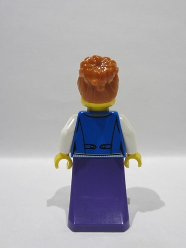 lego 2025 mini figurine bdp197 Wild West Train Passenger Female, Blue Vest, Dark Purple Skirt, Dark Orange Hair with Bun