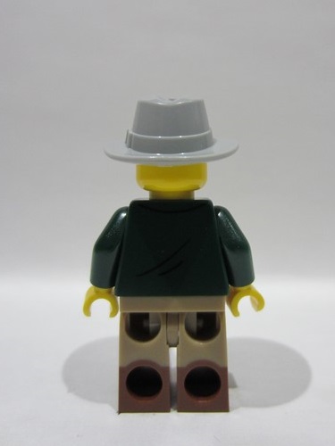 Female, Dark Green Jacket, Dark Tan Legs with Reddish Brown Boots, Light Bluish Gray Fedora