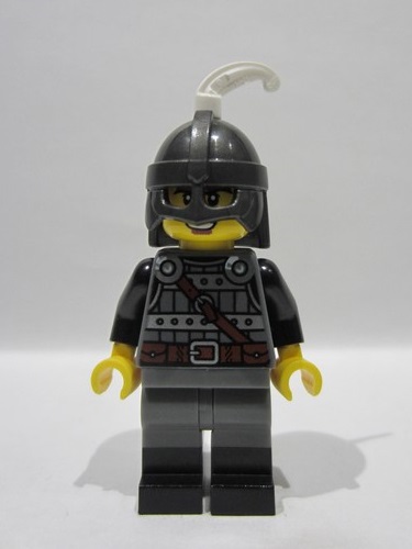Male, Dark Bluish Gray and Silver Armor, Black Boots, Pearl Dark Gray Helmet, White Feather, Dark Orange Beard, Light Bluish Gray Shoulder Pads
