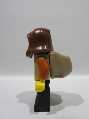 lego 2025 mini figurine bdp214 Peasant Male, Tan Vest, Black Legs, Reddish Brown Hood, Dark Tan Backpack
