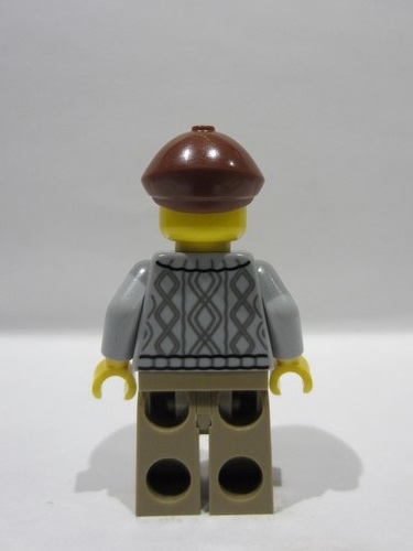 lego 2025 mini figurine bdp224 Antique Shop Male, Light Bluish Gray Knit Cable Cardigan Sweater, Dark Tan Legs with Pockets, Reddish Brown Flat Cap