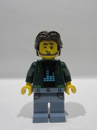 lego 2025 mini figurine bdp227 Antique Shop Male, Dark Green Hoodie, Sand Blue Legs with Pockets, Dark Brown Short Wavy Hair