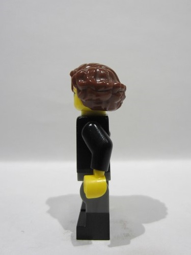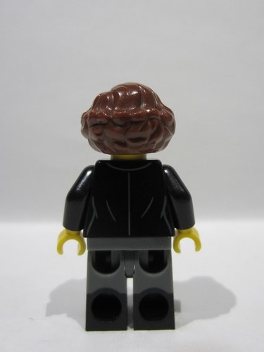 lego 2025 mini figurine bdp234 Vampire Castle Visitor Female, Black Suit Jacket with White Button Up Shirt, Dark Bluish Gray Legs with Black Boots, Reddish Brown Hair