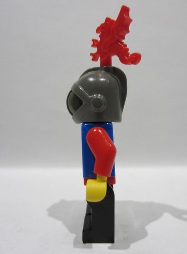 lego 1992 mini figurine cas179 Breastplate Blue with Red Arms, Black Legs with Red Hips, Dark Gray Grille Helmet, Red Plume Dragon