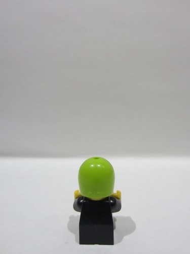 Yellow Minifigure, Head, Modified Baby / Toddler with Molded Lime Space Helmet and Printed Black Grin and Eyes with White Glints Pattern