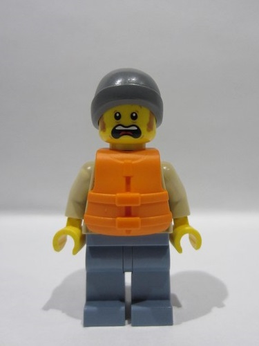 lego 2026 mini figurine cty1955 Man Tan Knit Cable Sweater, Orange Life Jacket, Sand Blue Legs, Dark Bluish Gray Beanie