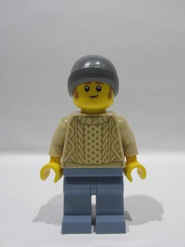Tan Knit Cable Sweater, Orange Life Jacket, Sand Blue Legs, Dark Bluish Gray Beanie