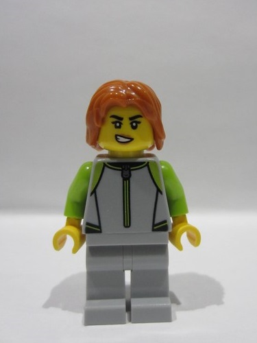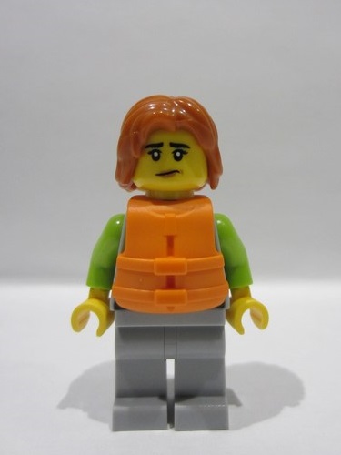 lego 2026 mini figurine cty1961 Surfer Female, Light Bluish Gray and Lime Wetsuit, Light Bluish Gray Legs, Dark Orange Hair, Orange Life Jacket