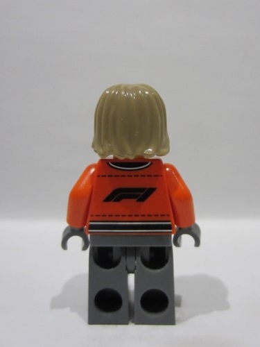 lego 2026 mini figurine cty2000 Formula 1 Pit Crew Member Female, Reddish Orange Racing Suit with Pockets, Dark Bluish Gray Legs, Dark Tan Tousled Hair