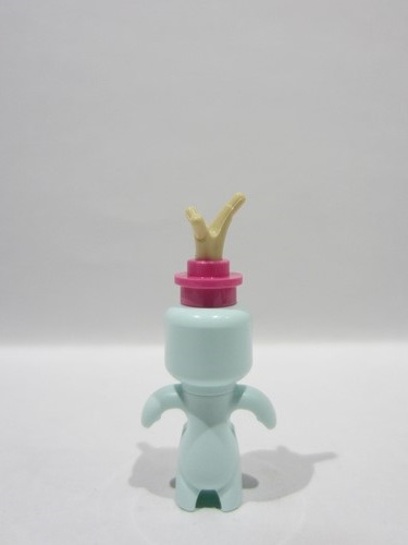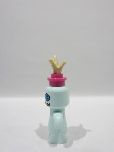 Light Aqua Minifigure, Head Doll with Black Circle Patch with Yellow X Eye Right, Dark Azure Button Eye Left, Wavy Smile with Dark Pink Stitches Pattern