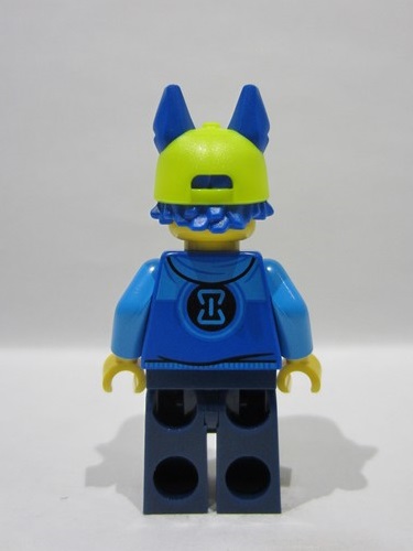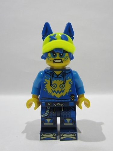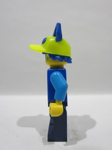 Blue Minifigure, Hair Combo, Hair with Hat, Short Hair, Pointed Ears and 'XO' and Molded Neon Yellow Ball Cap Pattern