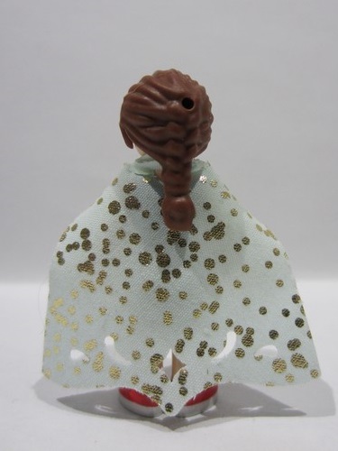 Light Aqua Mini Doll, Cape Cloth, Friends, Center Point at Bottom, 3 Small Top Holes, Swirl, Diamond Shape Holes, Gold Dots Pattern - Traditional Starched Fabric