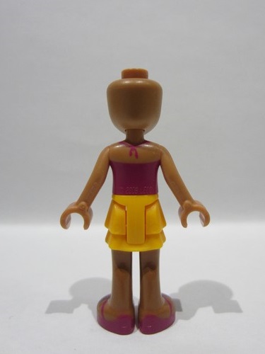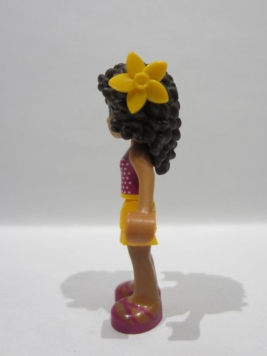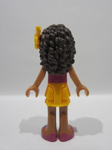 lego 2017 mini figurine frnd0208 Andrea Bright Light Orange Layered Skirt, Magenta Top with White Polka Dots and Bow, Bright Light Orange Flower
