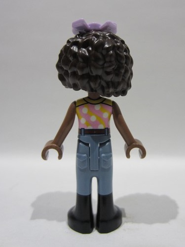 lego 2023 mini figurine frnd0621 Aliya Yellow and Bright Pink Top, Sand Blue Trousers, Black Boots, Lavender Bow