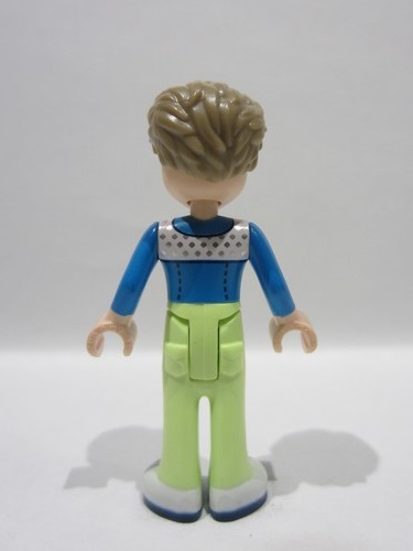 Light Nougat Torso Mini Doll Man Dark Azure and White Jacket with Silver Squares and Music Notes Necklace Pattern, Light Nougat Arms with Hands with Dark Azure Long Sleeves