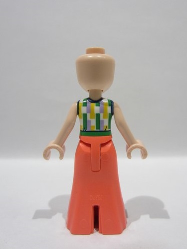 lego 2024 mini figurine frnd0683 Emma Adult, Pleated Coral Skirt, Dark Blue, Medium Lavender, Yellow, Green, and White Top