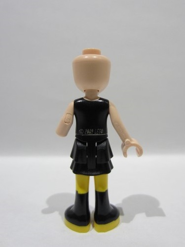 Black Mini Doll Hips and Skirt Layered with Molded Yellow Legs and Printed Black Boots with Laces Pattern - Thin Hinge