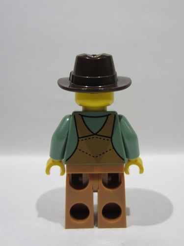lego 2025 mini figurine hol375 Farmer Male, Medium Nougat Overalls over Sand Green Shirt, Medium Nougat Legs, Dark Brown Fedora, Sweat