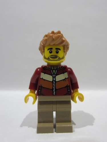 lego 2025 mini figurine hol378 Holiday Express Train Passenger Male, Dark Red Jacket, Dark Tan Legs, Medium Nougat Hair