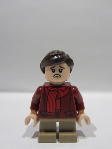 Light Nougat Minifigure, Head Dual Sided Child Female Dark Brown Eyebrows, Medium Nougat Chin Dimple, Grin / Scared Open Mouth with Teeth Pattern