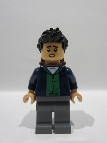 lego 2025 mini figurine jw130 Kenji Kon Dark Blue Jacket over Green Hoodie, Reddish Brown Backpack