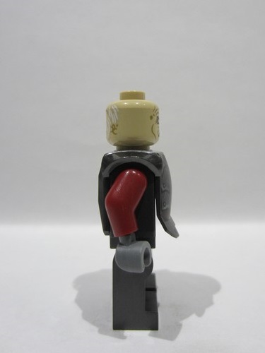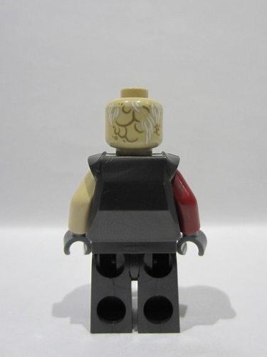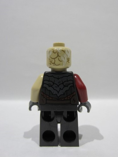 Pearl Dark Gray Torso Dark Silver Crude Plate Mail Armor, Dark Tan Laces and Spikes, Dark Brown and Reddish Brown Belts Pattern / Tan Arm Left / Dark Red Arm Right / Dark Bluish Gray Hands