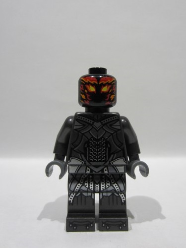 Black Minifigure, Head Alien with Yellow Eyes and Red and Orange Flames Pattern