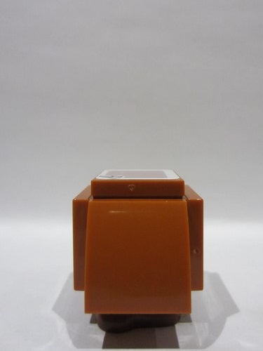Dark Orange Tile 2 x 2 with Black Eyebrows, Dark Brown and White Eyes Looking Straight, Angry Frown with Bottom Fangs Pattern (Super Mario Goomba Face)
