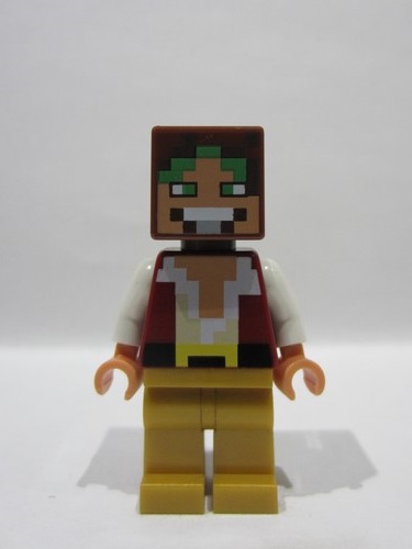 Reddish Brown Minifigure, Head, Modified Cube with Pixelated Nougat Face, Bright Green Eyes and Hair, Light Bluish Gray Mouth with White Teeth Pattern (Minecraft Wolf Tamer / Gold Hunter)