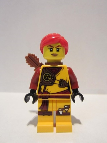Bright Light Orange Torso Ninjago Robe with Dark Red Undershirt and Sash, Dark Brown Armor with Ninjago Logogram 'Amber' Pattern / Dark Red Arms / Black Hands